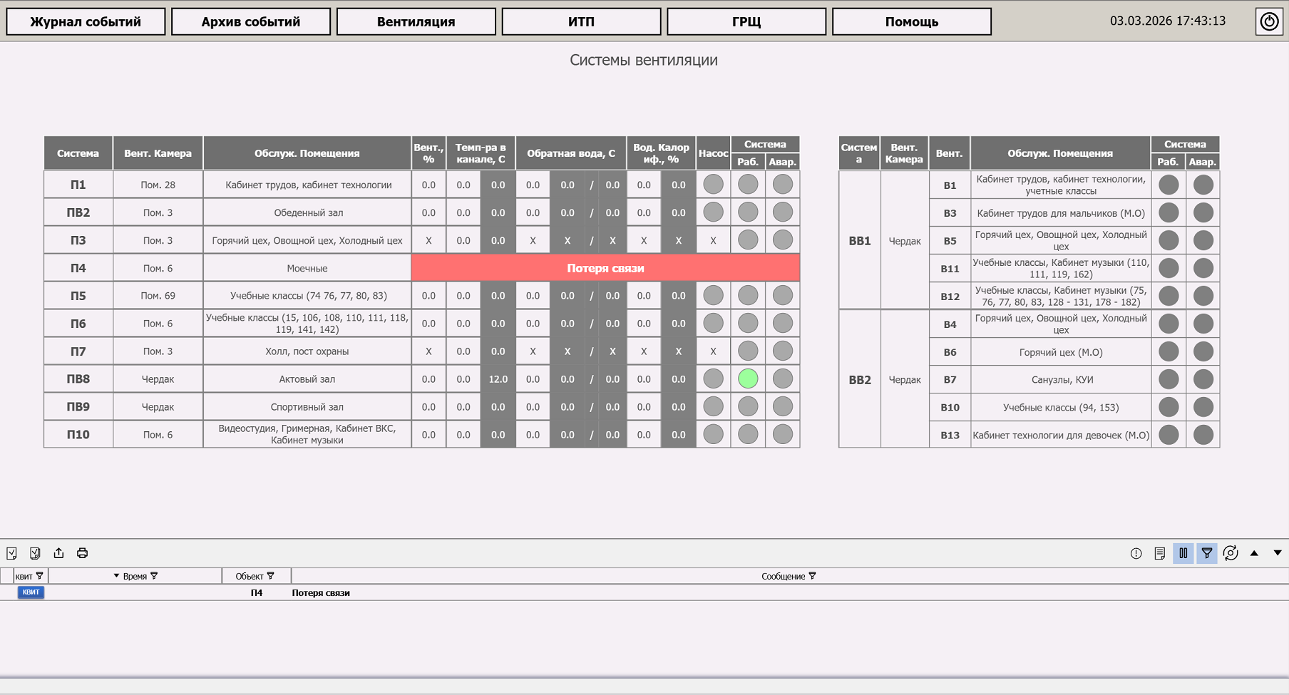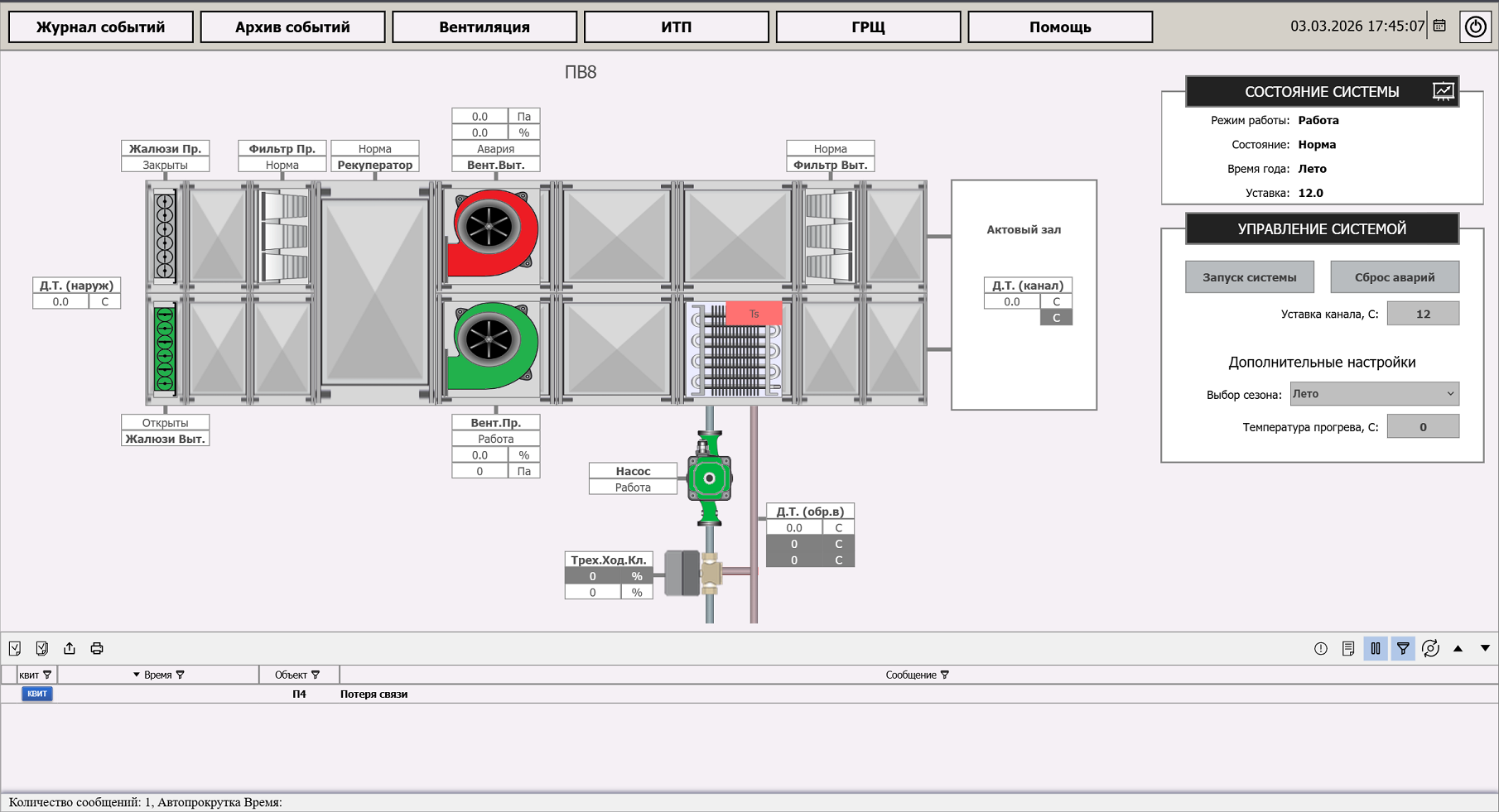 Система управления вентиляцией.
